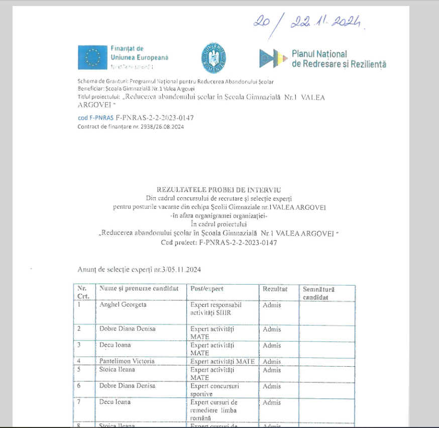 Rezultate interviu PNRAS